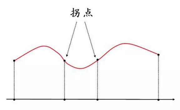 在数学术语中,拐点指的是平面曲线弯曲方向发生改变的转折点,在下图中可以看到,它是连续曲线上的凹弧和凸弧的分界点。所以拐点跟峰值并不在一个点位上。