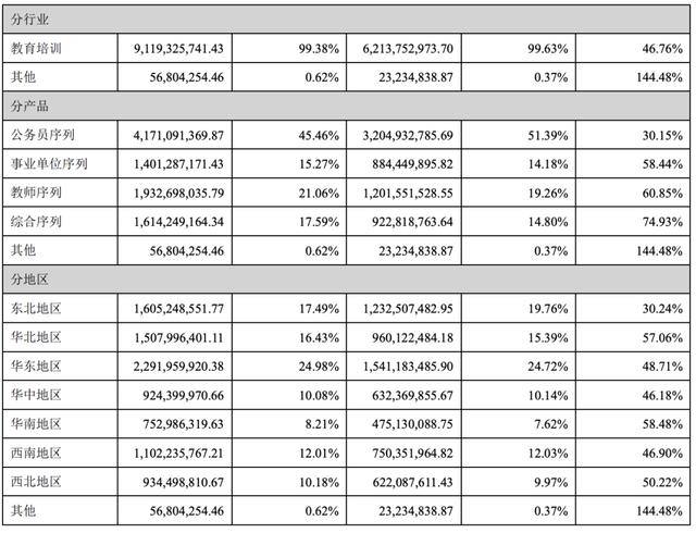 相较之下,事业单位、教师以及综合三个序列营收占比相对均衡,分别为15.27%、21.06%和17.59%,虽然这三大业务在营收体量上仍无法与中公教育的传统优势公考业务相提并论,但相关业务的增速相对更快。