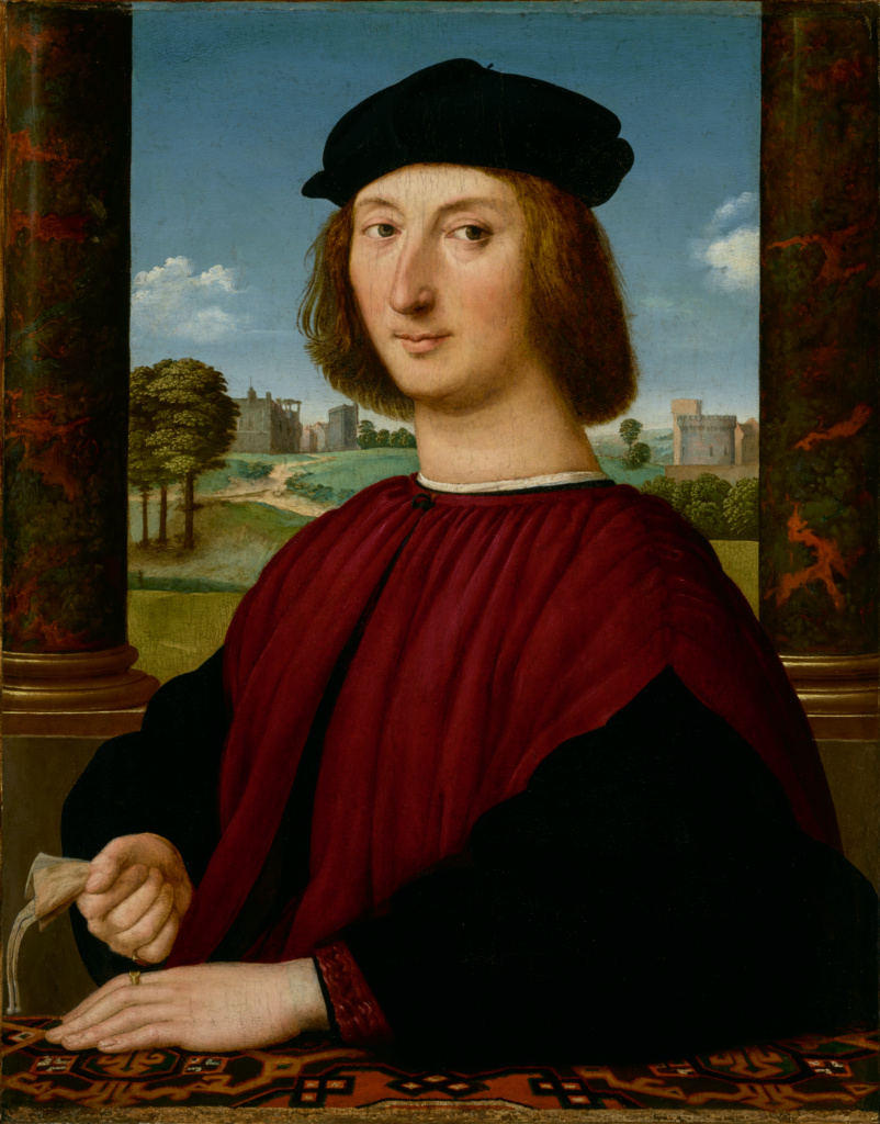 拉斐尔《穿着红衣的年轻男子肖像》。精致的boy都会好好洗手。