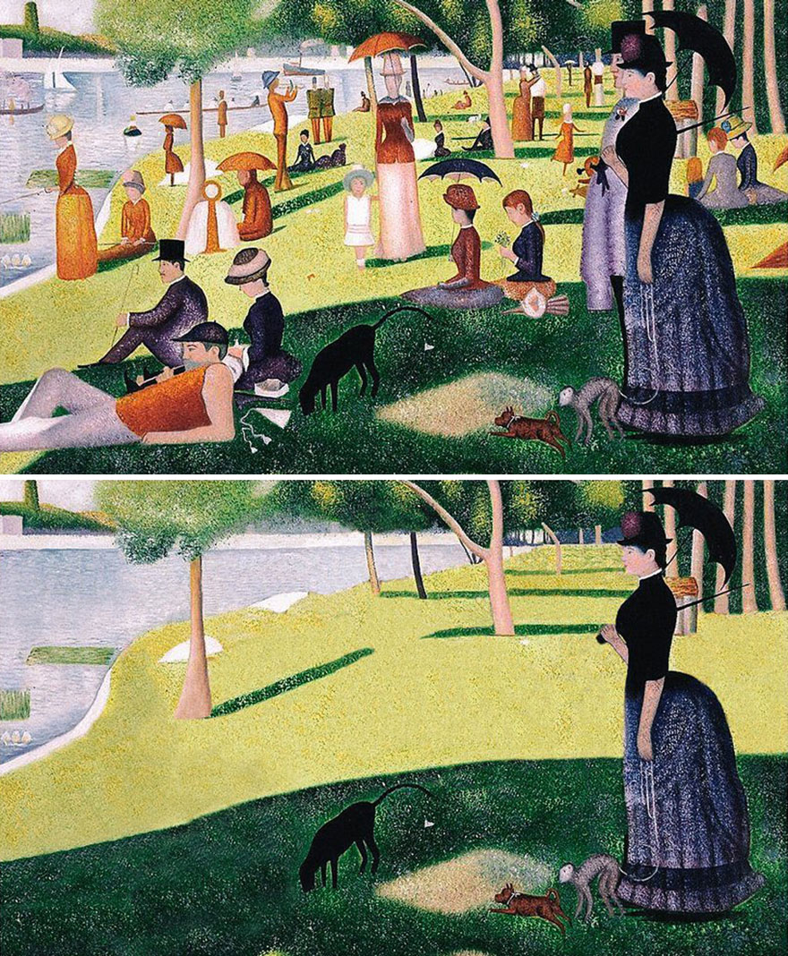 乔治·修拉《大碗岛上的一个星期日》,热闹的大碗岛也没人了。