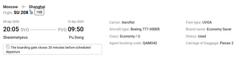 俄航 SU208 预计于当地时间 20 时 05 分在莫斯科谢诺梅杰沃机场起飞,阿旭和另外 3 名同学下午 5 点就到达机场。整个机场当天只有这一架航班,免税店和餐厅也早因疫情关门停业。