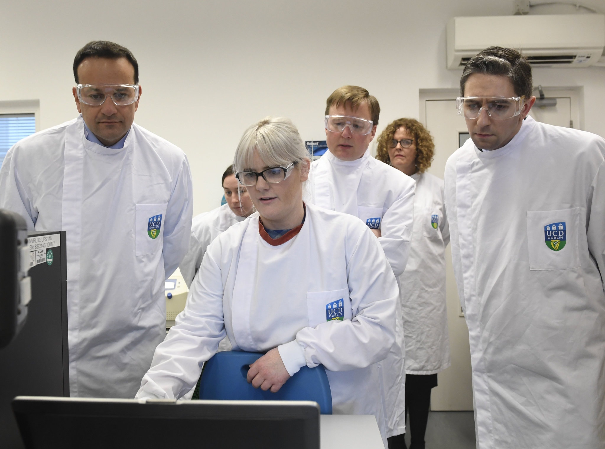 瓦拉德卡(左)上个月在都柏林参观国家病毒实验室