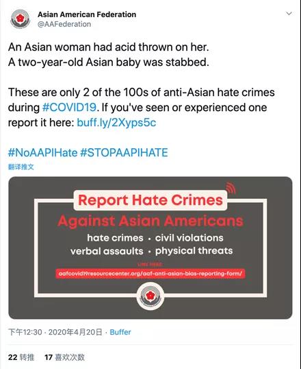 泛亚裔NGO组织亚美联盟(Asian-AmericanFederation)执行主任乔安·柳(Jo-Ann Yoo)说:“由于某些原因,针对亚裔美国人社区的仇恨犯罪以及这种犯罪的可能性没有得到认真对待。”
