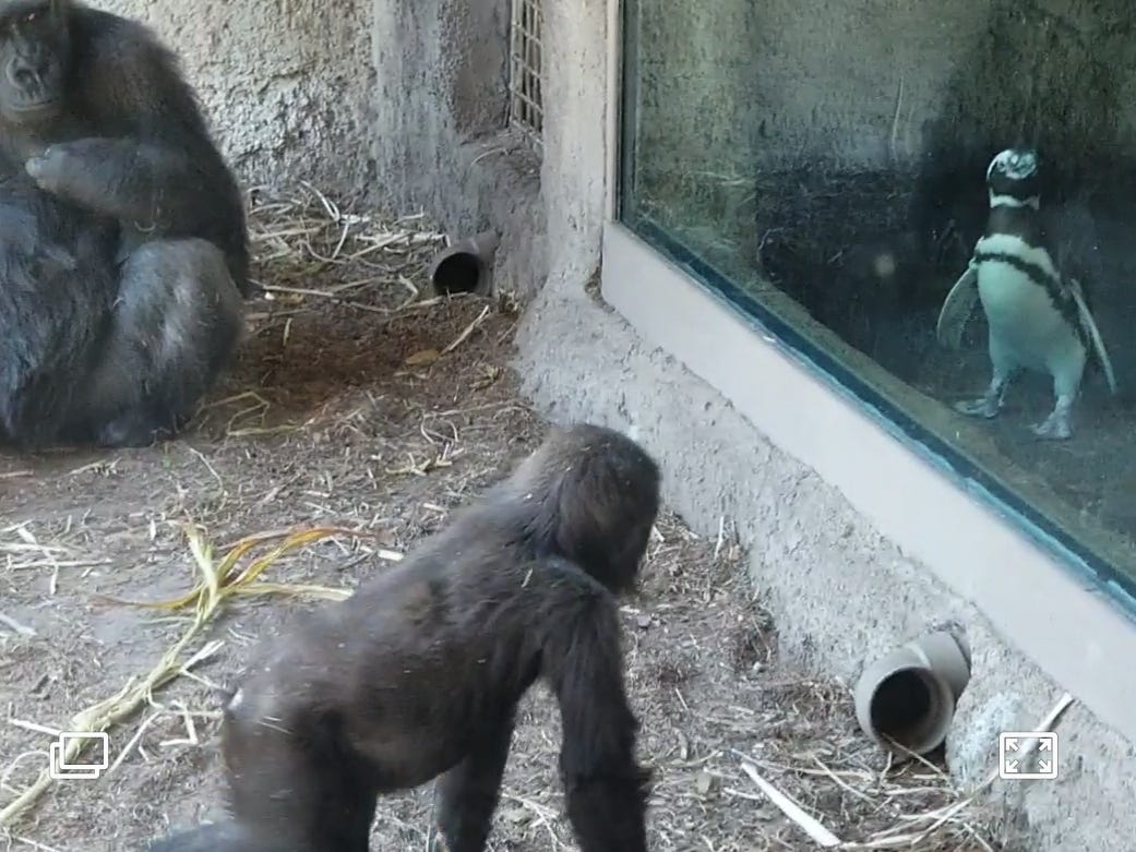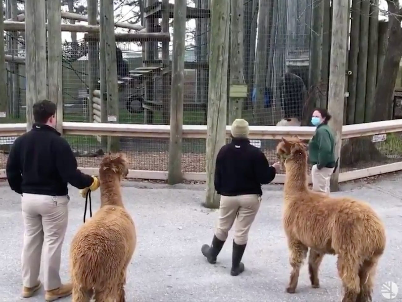 加拿大多伦多动物园的猩猩们则在疫情期间见到了羊驼。