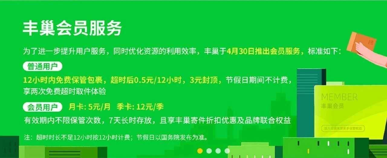 丰巢会员:月卡5元/月,不限保管次数,当月任意收件,每件可享7天长时存放,有效时长30天;季卡12元/3个月,不限保管次数,7天长时存放,90有效。