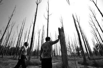2013 年,张北县西关林区,大片大片的杨树只剩下光秃秃的树干 图源:京华时报