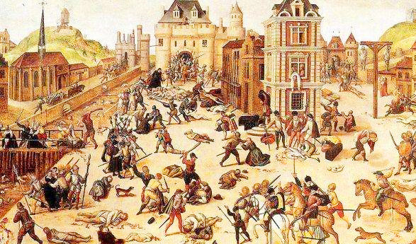 1572年8月,法国太后卡特琳决定把女儿嫁给纳瓦尔国王亨利,实现和平,但由于大批胡格诺教徒追随亨利进入巴黎,引发天主教势力恐慌。8月23日到24日夜,天主教徒对巴黎的胡格诺教徒展开屠杀,因为正值圣巴托洛缪节,史称“圣巴托洛缪大屠杀”,纳瓦尔国王因临时改信天主教而幸免于难,双方战事再起。