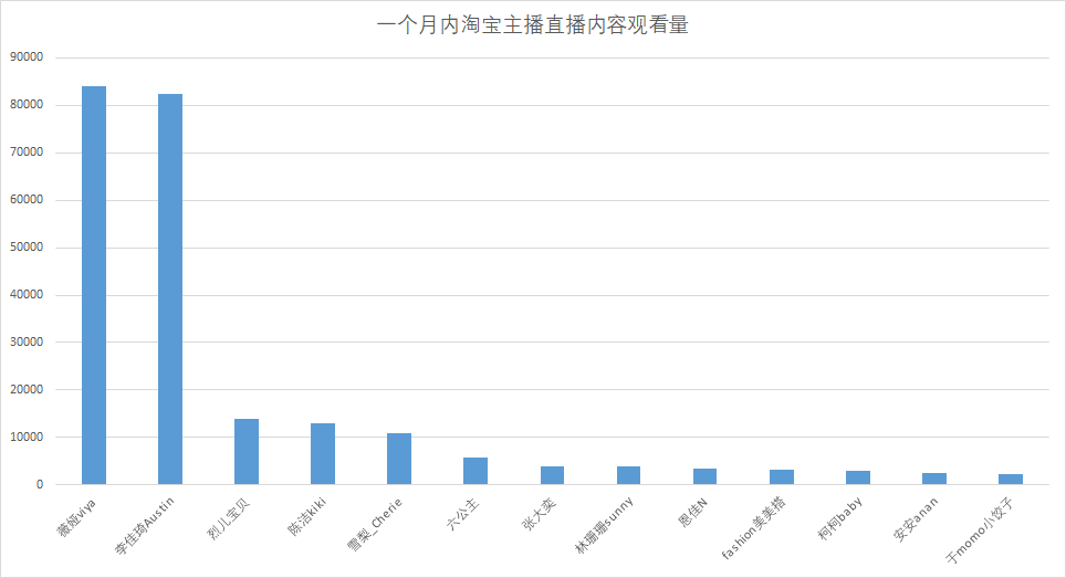 据Mob研究院数据,在淘宝top13的主播一个月直播内容观看量中,李佳琦和薇娅的流量占整体的71%。而且不同层次的主播之间流量差距也十分巨大,第三名比第二名流量减少过8成,第6名比第5名主播流量减少近一半。