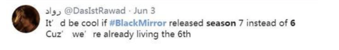 “《黑镜》要不就跳过第六季直接发布第七季吧,因为我们现在就生活在第六季里面。”