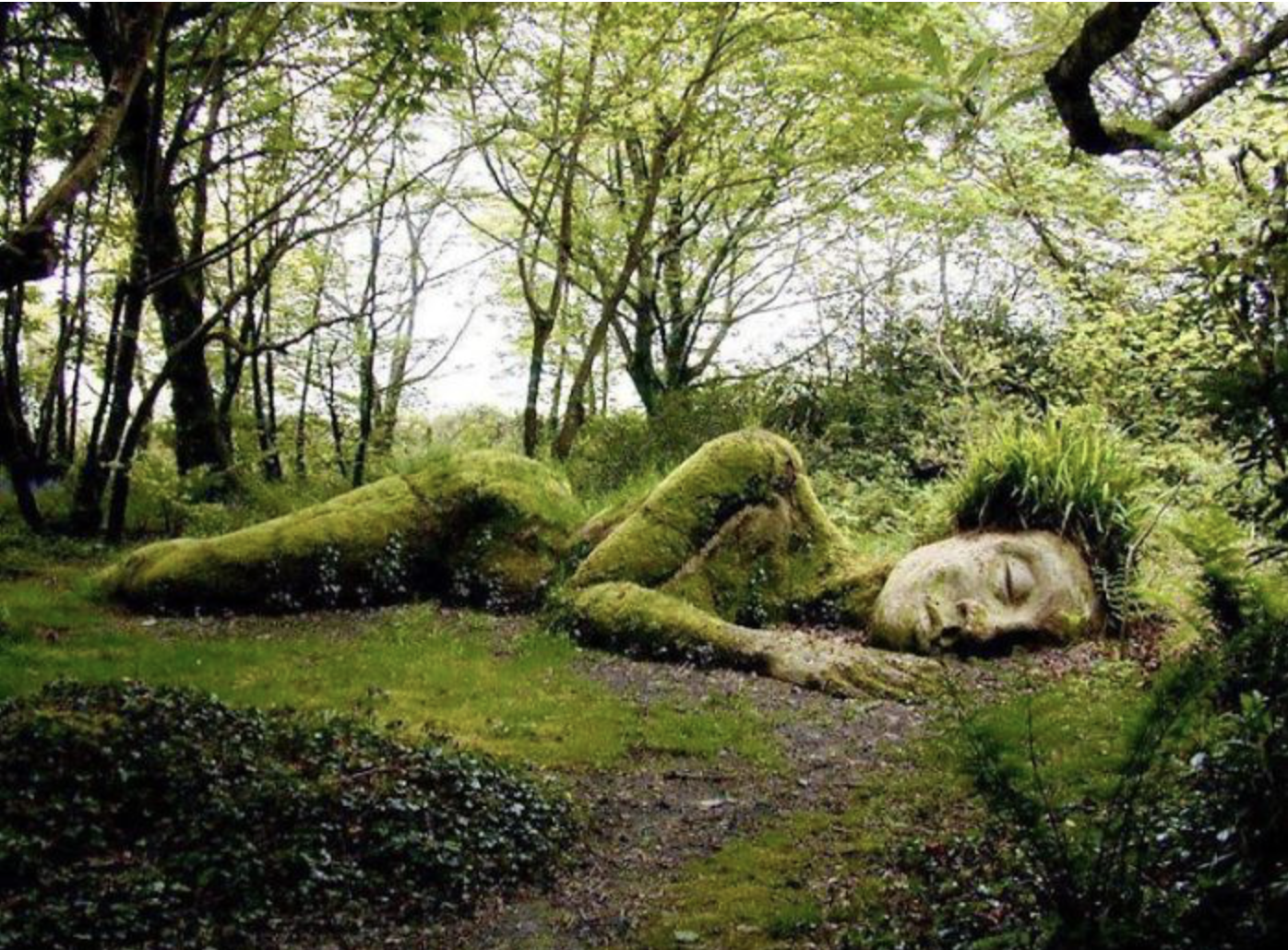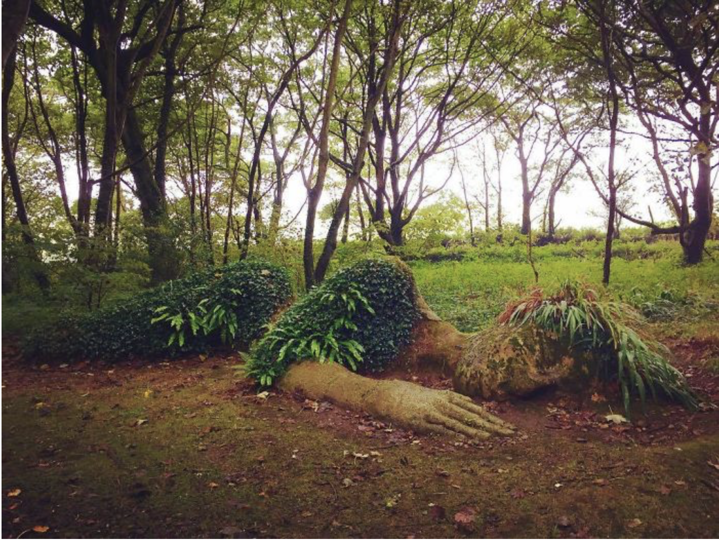女仆是由木材和防风网制作的空心框架建造的。为了让它生长,雕刻家兄妹皮特和苏·希尔给它的身上涂上了粘稠的泥浆和酸奶,让这个女仆,成为了一个活生生的雕塑。她的“衣服”和“头发”会随着季节的变化而变化,比如草、常春藤和苔藓的生长和枯萎。所以你会看到她在春夏都富有活力的样子,而到了秋冬,又是另外一番面貌。