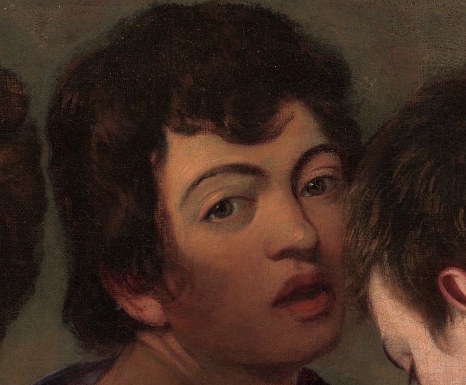 画面中的四位人物,眼神互传,只有藏在后景的露出头部的男孩在直视画外,这个男孩也被认为是卡拉瓦乔的自画像。
