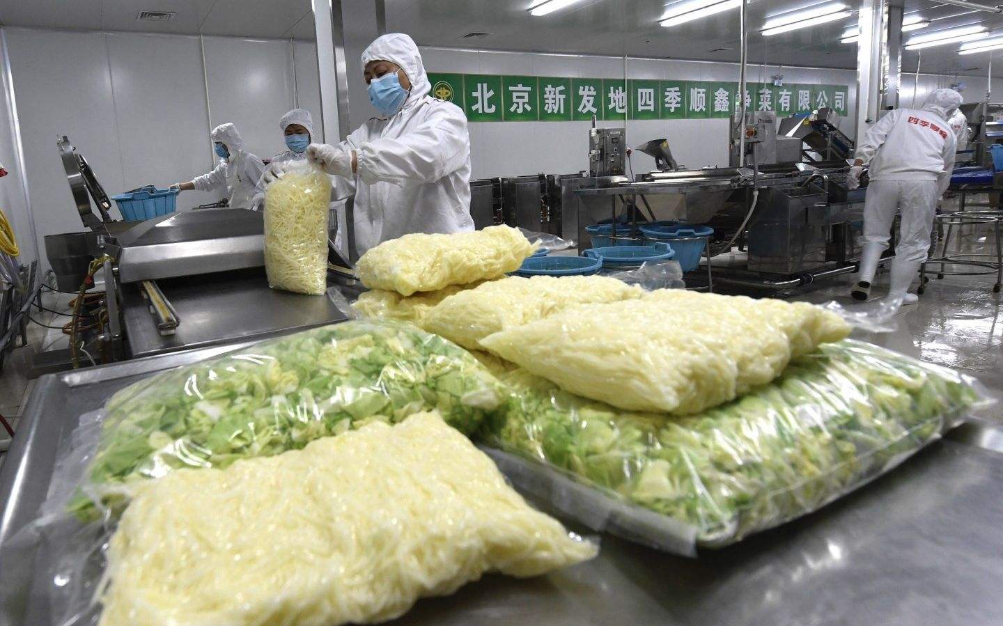在官方媒体报道中,商务局负责人表示,推广净菜要从生产、销售、包装等多个环节入手,包括增加净菜生产厂商、鼓励大型商超售卖净菜、在居民小区设立净菜专卖区。相关报道通常也都以“新发地四季顺鑫净菜加工车间”为模板。车间里大型流水线上,土豆、胡萝卜、包菜、芹菜、蒜苗等被切割成块、段、丁、丝等不同形状,被塑封在真空包装当中。