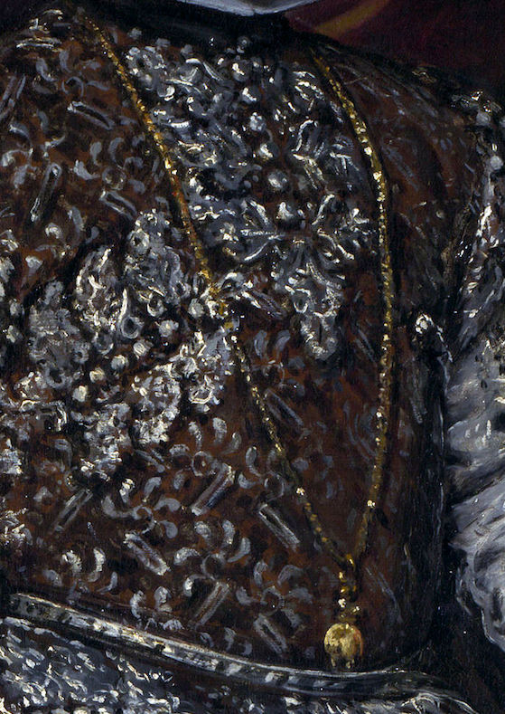 但稍微离远,便可以让人联想到光的反射。衣服质感的表现效果,呈现出超越了当时的技术水平,这证明委拉斯开兹在新的颜色实验中大获成功。