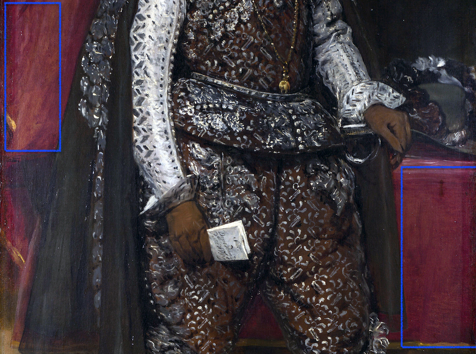 国王手持着的发言稿上有委拉斯开兹的个人签名,也代表了这是一幅连作者本人也满意的肖像画。