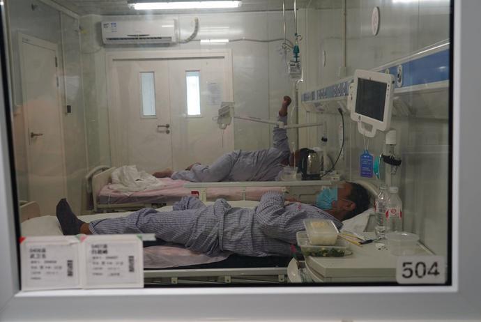 这里边好几百人都等着核酸检测。我们在这已经等了三天了(编者注:指到6月15日为止),有的人现在情绪都有点不太好了。本身天气就热,我们晚上也没住的地方,就在外边搭个躺椅,或者有个简单的单人床在外边睡,露天的,而且晚上有蚊子乱飞。