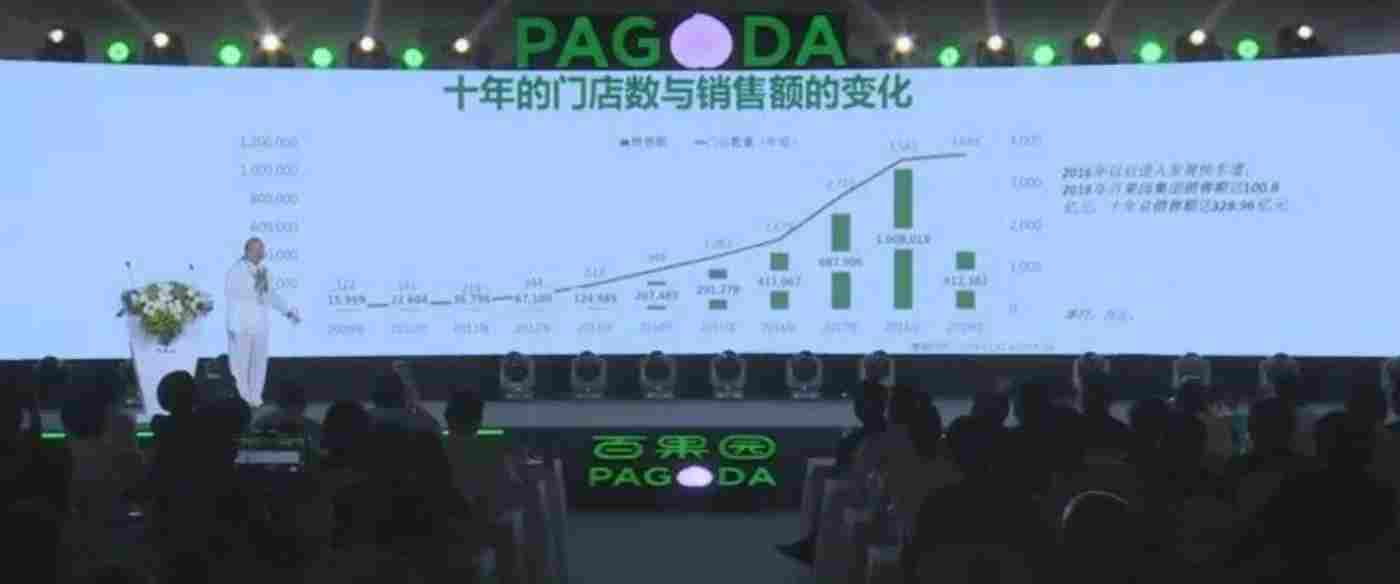 创始人余惠勇在去年一次公开活动上展示百果园业务数据。