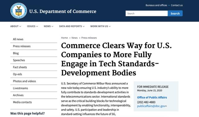 北京时间6月16日凌晨(美国时间15日),美国商务部修改了针对华为的禁令,允许美国公司与华为就5G网络标准制定展开合作,但仅限于行业标准制定场景。在禁令修改以后,美国企业在行业标准制定场景下可以和华为披露和讨论相关技术细节,不再需要向美国政府申报,也不被视为违反禁令。