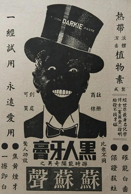 而1933 年在上海创立的黑人牙膏,朴素的中国人觉得皮肤黑显牙白,就取了这个名字,英文为 Darkie,其实是带有种族歧视的,看当时的包装就知道。