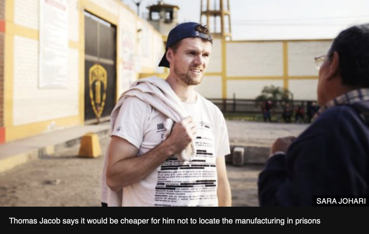 雅各布表示:“监狱的实习生告诉我,他们知道如何缝纫、编织和印花,但他们没有机会发挥这些技能。我意识到可以为这些人做点什么,所以决定创立一个服装品牌,在监狱里设计、生产和销售。”随后,他就在利马建立了这家服装公司。
