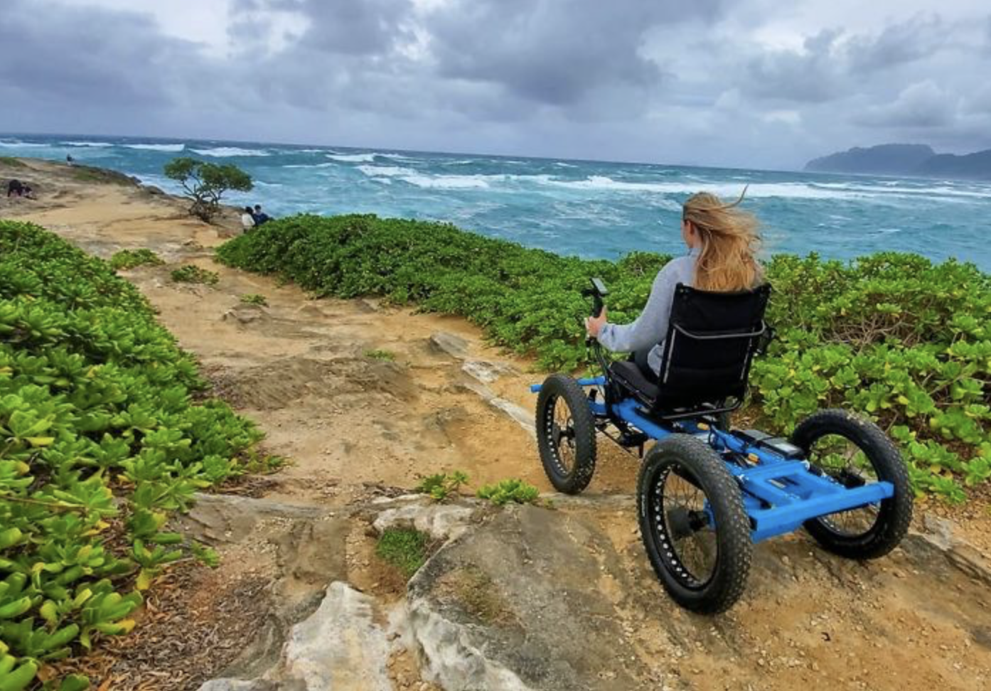 这辆越野“轮椅”是用自行车零件建造的,所以维护和维修非常容易,而且是全电动驾驶,不产生噪音。单电池续航里程为10-20英里,双电池续航里程为25-35英里。还有一个后机架安装系统,可以装下露营装备或野餐篮。