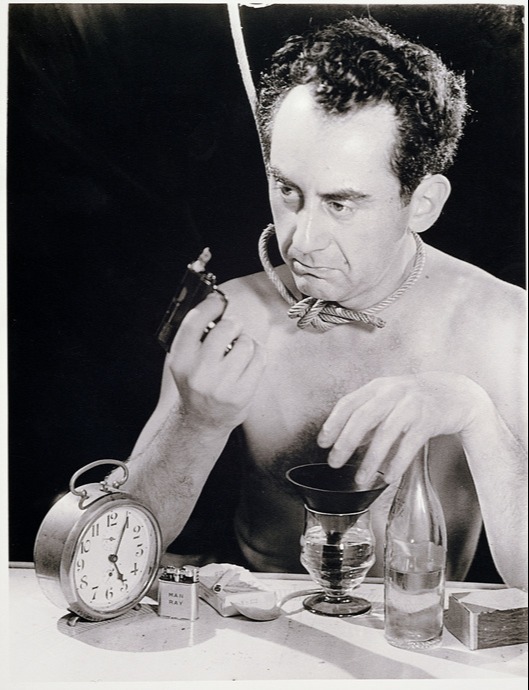 后来,曼·雷拍摄过一张自画像,他的太阳穴抵着一支手枪,脖子上套着绳索,试图以自杀威胁和请求李·米勒回到他身边。