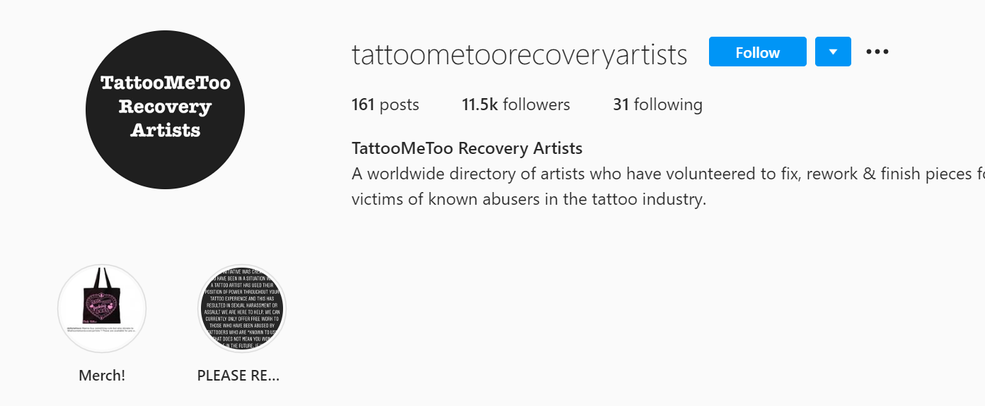 来自世界各地的艺术家以 “纹身Metoo修复艺术家”(Tattoo Me Too Recovery Artists,下称TMTRA)的名义聚集在一起,为这个行业里性暴力受害者们提供修复、返工和完成纹身作品。