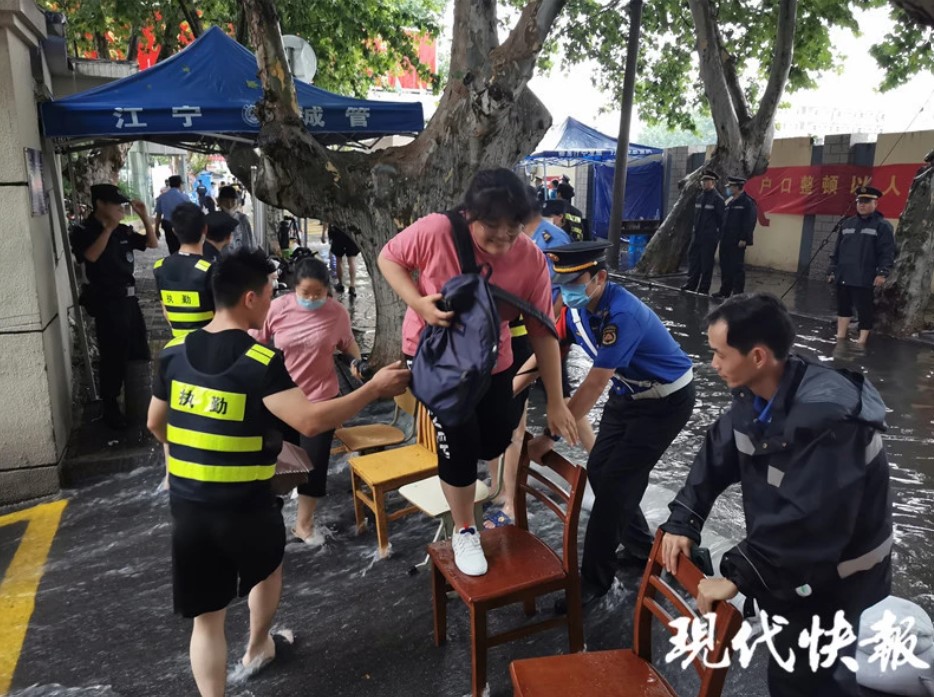 当天也是湖北高考的第二天。前一天的凌晨 4 时左右,在通往高考考点的一条主要道路上,城管开始采取紧急措施排涝,并搭建起一条 200 米的临时便桥,方便考生出行。