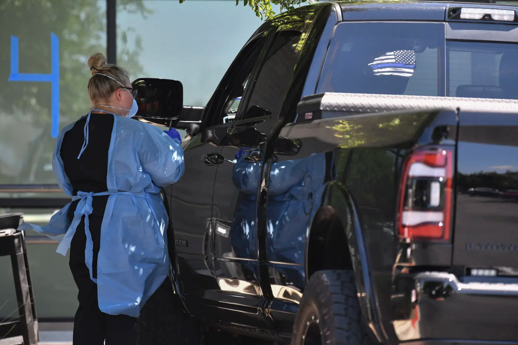 7月17日,哈里斯县的公共卫生人员正在高温下进行检测工作。