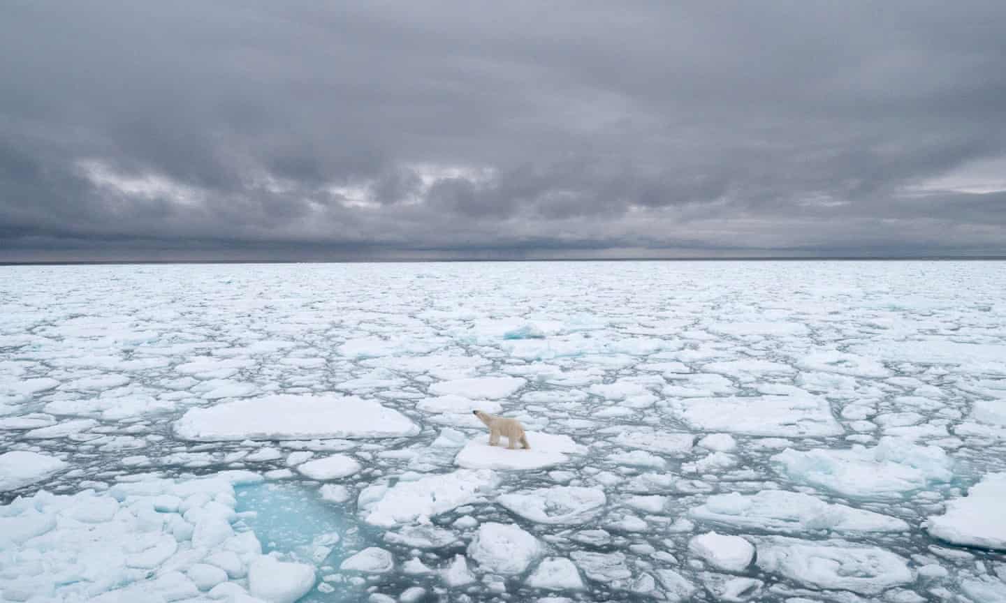 通常,北极熊依靠北极海面上漂浮的海冰来寻找海豹来觅食,但是随着海冰不断融化,也使得北极熊越来越难找到食物来喂养自己的幼崽。
