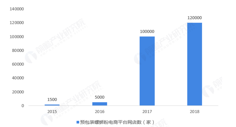 据前瞻产业研究院的数据,截至2018年,预包装螺蛳粉电商平台网店数已经达到了1.2万家。
