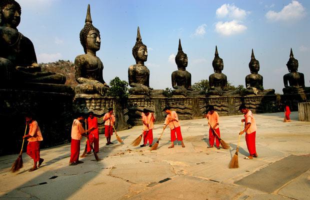 在寺庙里劳动的戒毒者(图片来源:telegraph)
