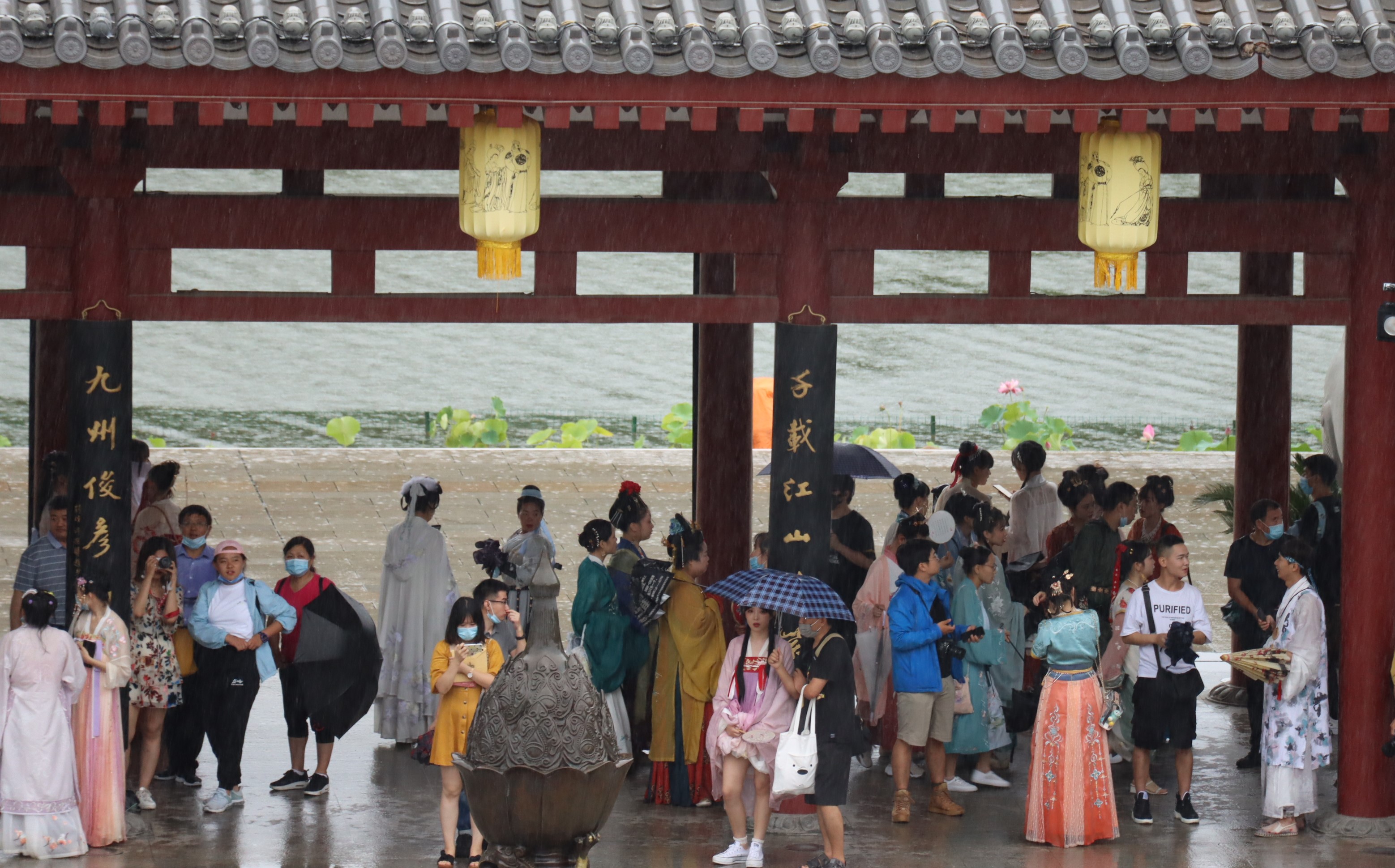 大唐芙蓉园在7月中旬举办了一场久违的汉服活动,大雨也没有熄灭参与者的热情。