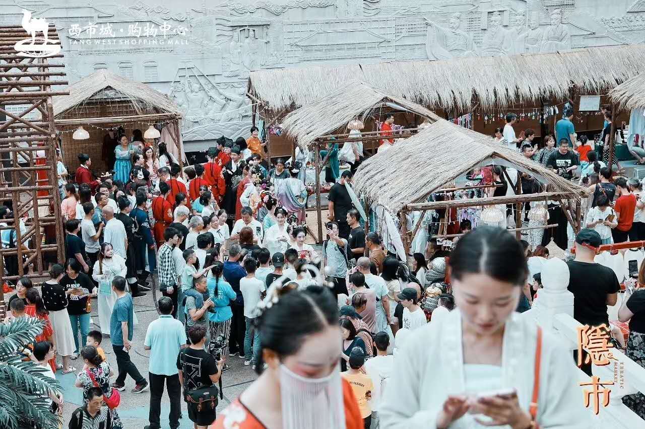 去年《长安十二时辰》播出后,大唐西市的运营方借着这一热度创设了“隐市”,茅草搭棚,专供汉服周边饰品、手工艺品出摊售卖,间或组织一些汉服表演。大唐西市位置正在唐时西市旧址,也被视为丝绸之路的起点。这里原本的业态比较单调,古玩玉器占主导,除了南边的现代商圈,本地人都不太过来。隐市的摊位招商负责人艾米告诉全现在,摊位费非常之便宜,日租金在50-60元。借着隐市的粗放型古风摆摊经济,西市成了汉服出行的热门打卡地。