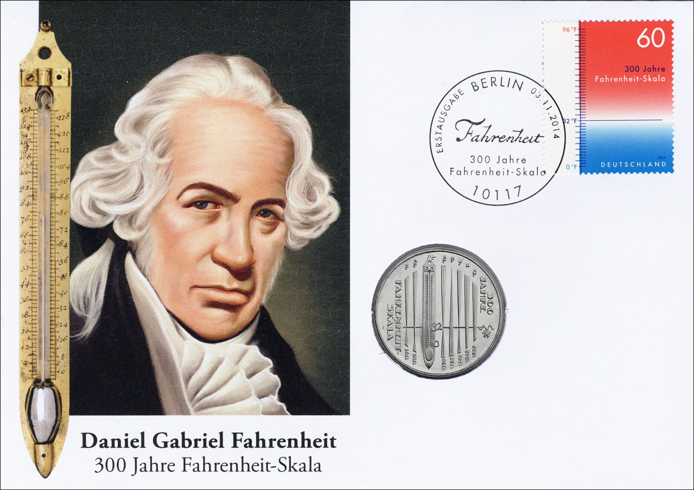 首先,他将水、冰和氯化铵混合,达到了当时所能记录到的最低温度,将其定为0度。然后又将水的冰点定为32度,最后将人的体温定为96度。不久,在采用能承受更高温度的水银温度计后,华伦海特改将水的沸点作为温度计的上限,定为212度。这样,他可以将水的冰点和沸点之间划分为180度,同时又使得人体体温接近100这个整数。