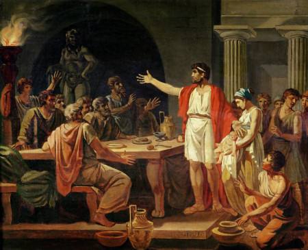 没办法,年轻的国王只能亲自出马游说老百姓。他一个村一个村地去动员、去宣传他的“治国蓝图”。最开始支持他的是穷人。穷人们一看英勇帅气的国王这么没架子,竟然亲自来我家跟我讲怎么让我过上好日子,多难得啊,感动得眼泪稀里哗啦的,赶紧表示支持。不光支持,还跟在国王身后,帮助国王组成了游说队伍!于是,提秀斯的“治国蓝图”很快从一个村庄传到另一个村庄,从穷人到小商小贩再到贵族阶层,阿提卡地区都被他的“治国蓝图”洗脑了。