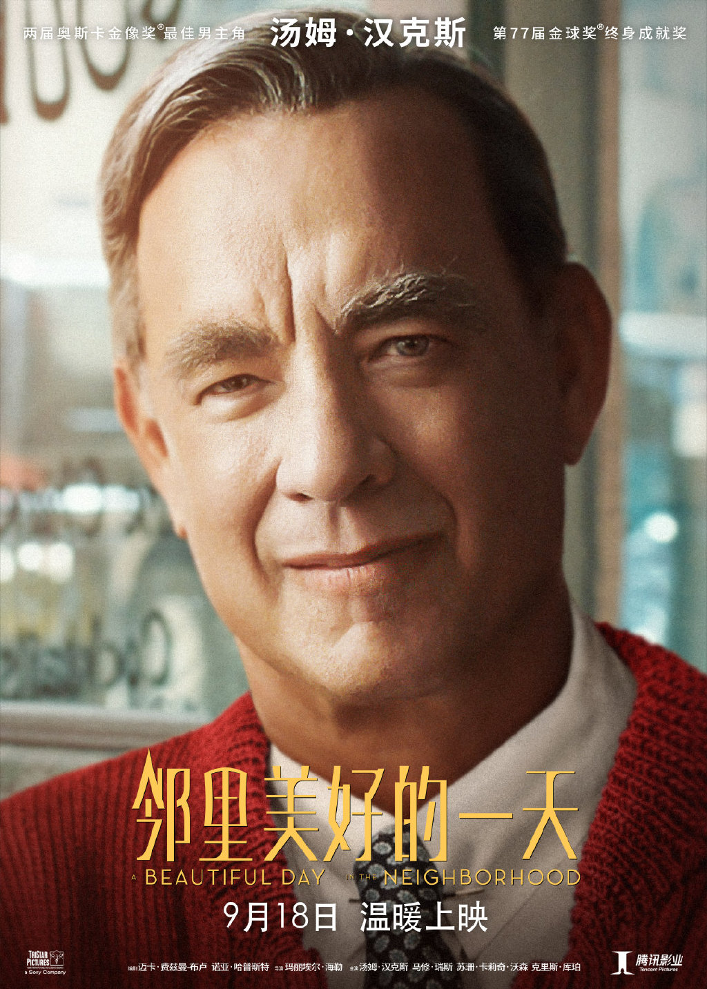 汤姆·汉克斯主演电影《邻里美好的一天》定档9月18日——8月20日,汤姆·汉克斯主演电影《邻里美好的一天》发布海报,宣布将于9月18日在内地上映。影片根据真实事件改编,聚焦美国著名电视主持人罗杰斯(汤姆·汉克斯饰)与记者罗伊德·沃格尔(马修·瑞斯饰)之间的友情故事。