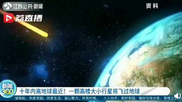 一颗高楼大小行星将飞过地球,十年内离地球最近/图源:江苏公共频道截图