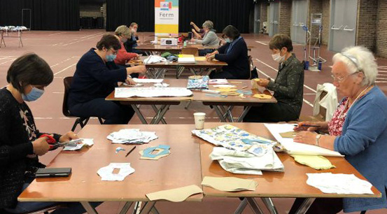 在比利时城市代因泽,志愿者正在制作透明口罩。图片来源:Ferm