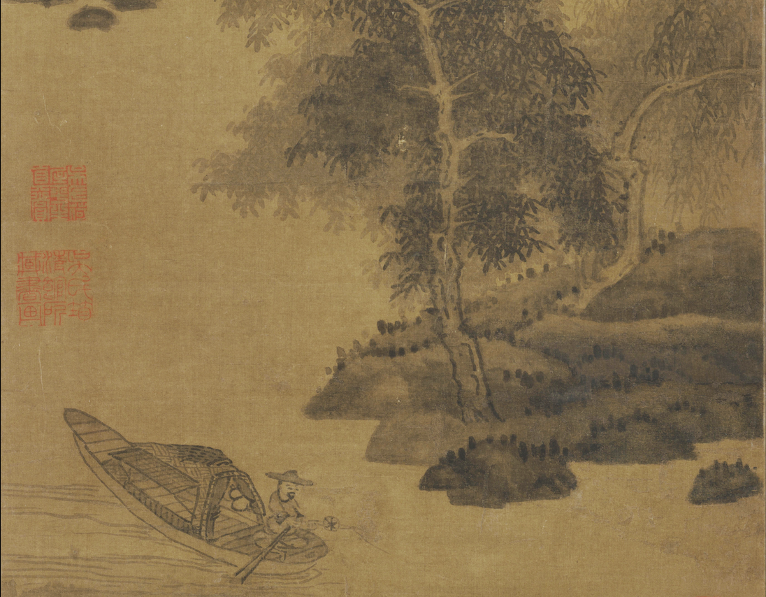 例如弗利尔美术馆藏的《渔父图长卷》中,共有小渔船15只,但却只有4只船上的渔父正在从事与垂钓直接相关的事情,即便是正在垂钓的渔父,也显得漫不经心,似乎是否有鱼儿上钩,并不是他们在意的事。