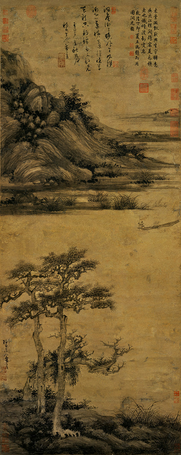 吴镇的一生,在自己的江湖中参禅悟道,独立于天地之间,没有目的,亦无归处,但是他的性灵却超越了时空,融入了世界。