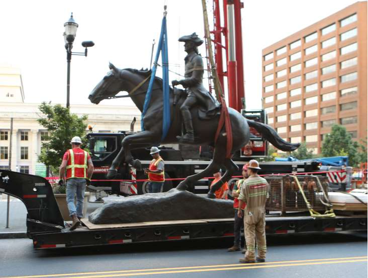 威明顿市的凯撒·罗德尼雕像被移除 图片:DELAWARE NEWS JOURNAL