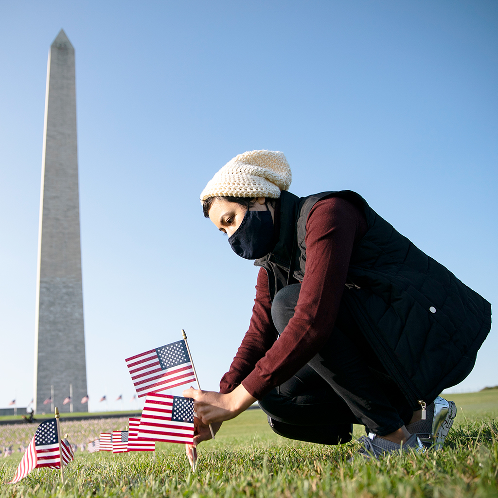 美国 | 新冠肺炎死亡人数超20万,民众插国旗悼念亡者