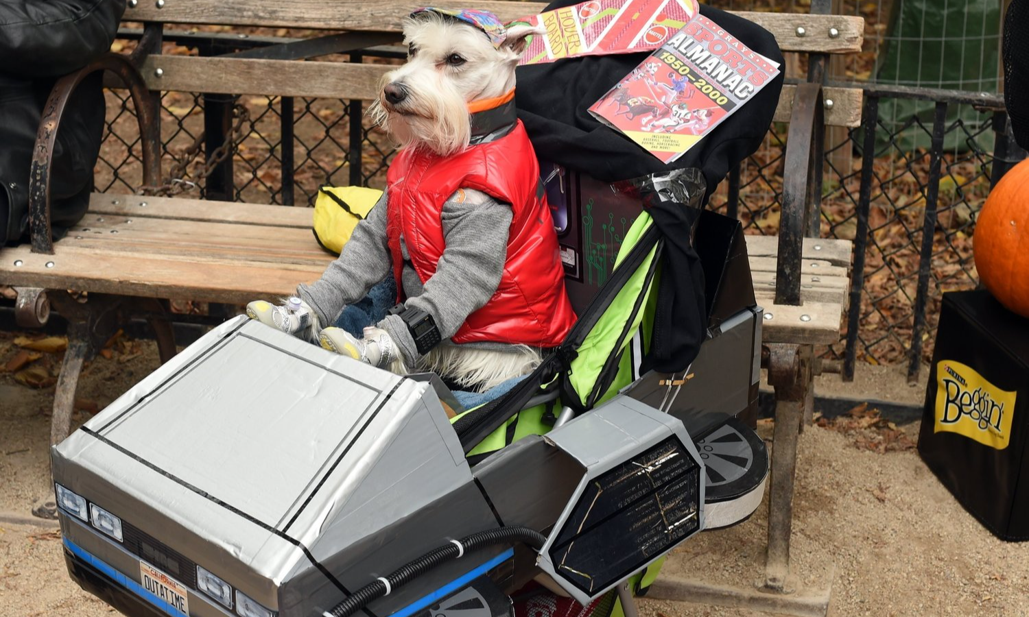 一只被打扮成马蒂·麦克弗莱的狗。图片来源:Getty Images