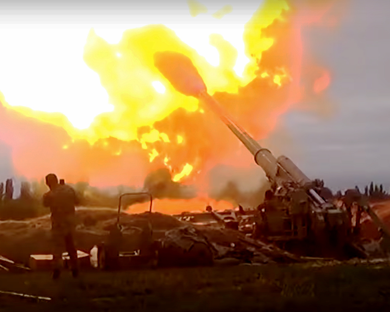 9月28日,阿塞拜疆国防部公布阿方打击亚美尼亚据点的关键时刻。亚美尼亚驻俄罗斯大使瓦尔丹·托干扬(VardanToganyan)当天表示,已有约30名亚美尼亚士兵在纳卡地区的武装冲突中丧生,另有约100人受伤。亚美尼亚驻俄罗斯大使称土耳其已从叙利亚北部向阿塞拜疆派遣了约4000名士兵,将协助阿方与亚美尼亚作战。而亚美尼亚方面已宣布戒严令,并发布军事总动员。阿塞拜疆总统宣布国家进入战时状态,并在全国实行戒严令。图片:人民视觉