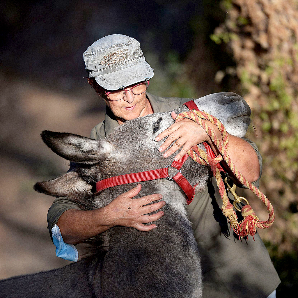 9月28日,在“博斯克森林”(魔法森林)里,胡安·拉蒙·希门尼斯医院卫生工作者克里斯蒂娜·马里诺(Cristina Marino)拥抱了一只名叫麦哲伦(Magallanes)的小驴进行减压。路易斯·曼努埃尔·贝哈拉诺(Luis Manuel Bejarano)创立了一个“快乐驴协会”。在该协会中,有个驴医生情绪诊所,专门为参与新冠疫情治疗的卫生工作者提供情绪疏导。图片:视觉中国