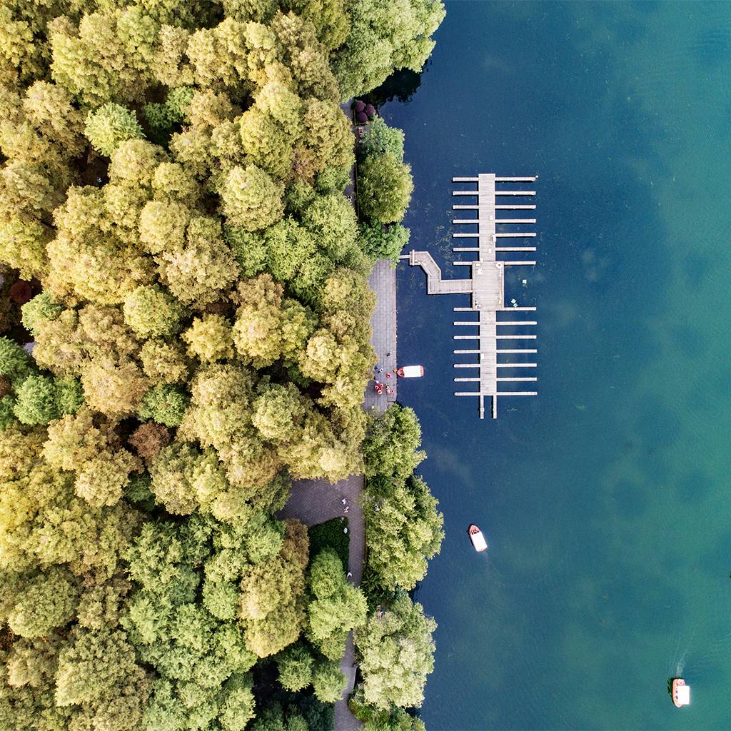 10月11日,航拍西湖风景区,曲院风荷和杨公堤一带的树叶已开始变黄,杭州最美秋色即将到来。图片:视觉中国