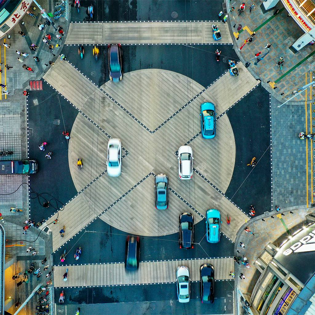 10月10日,北京路翻新工程完毕,曾经走红网络的斑马线也规划成更适合人车通行的图形。对角线的斑马线规划可缩短人流通过路口的时间,保证交通安全。图片:视觉中国