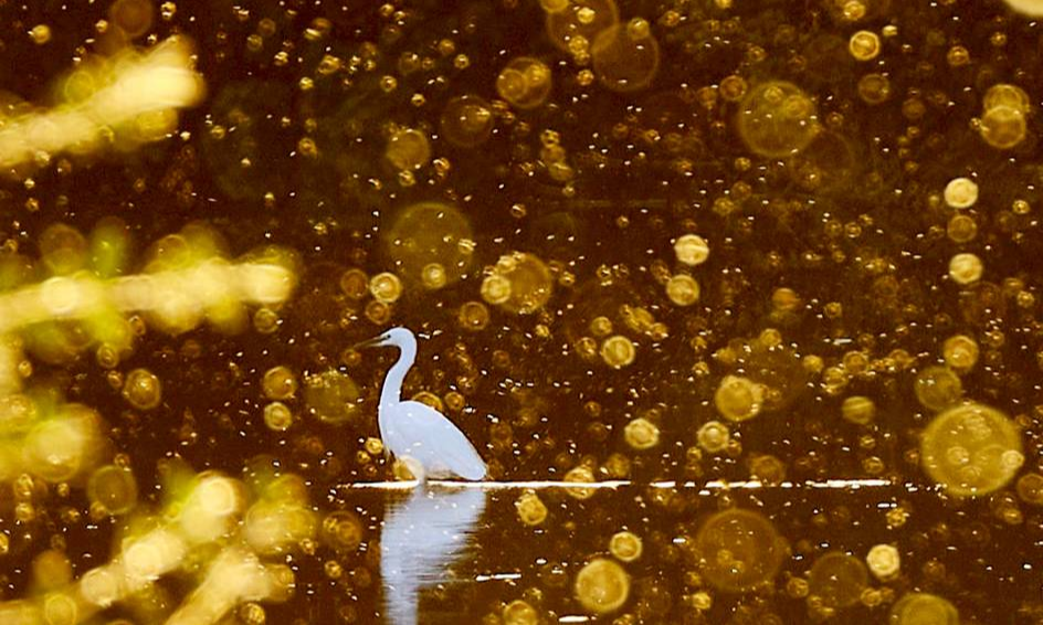 当地时间10月12日,一只白鹭正穿越水面,成千上万只昆虫在阳光下反射着光芒,好似金色灰尘。在一个美丽的秋日傍晚,摄影师威尔·霍尔(Will Hall)伴着日落拍摄到这一景象。霍尔表示:“在夕阳下拍摄翠鸟时,我转过身,看到成千上万的小昆虫成群结队地反射着金色的阳光,整个画面就像白鹭在金色的泡沫中淋浴。蜻蜓、蚊子、蠓虫等昆虫一起打造了这一非凡效果。被框在其中的白鹭看上去美极了。”图片:Will Hall/视觉中国