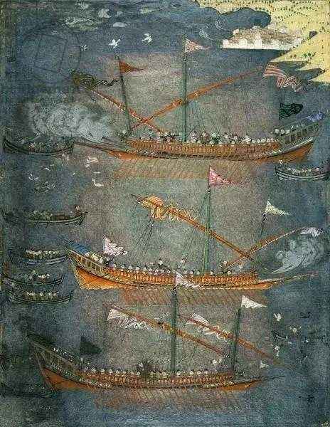 贡卡洛也不甘示弱,立即用强烈的火力回击,奥斯曼舰队一时无法靠近。双方激战近6个小时,贡卡洛的帆船马上就要支撑不住了,而其他的帆船又帮不上忙,只能干着急。